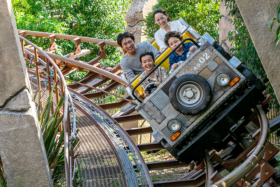 - アドベンチャードライブ(今回のベスト!) 4人乗りの小型コースター。100cm制限があるため弟くんは乗れませんでしたが、4歳のお姉ちゃんは「きゃーきゃー」言いながら大興奮!40分待ちの価値ありです。